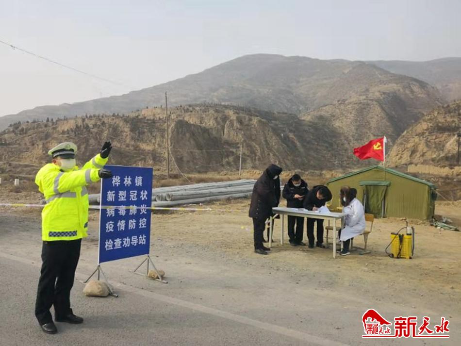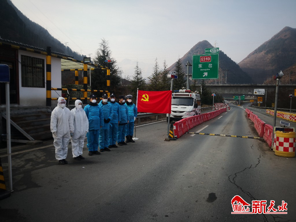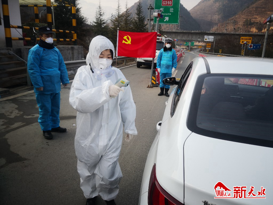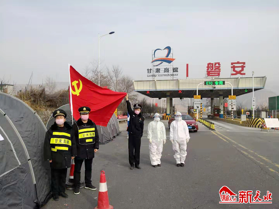 1月28日下午14时许,记者来到天水市公安局麦积分局东岔省际公安检查站时,远远地就看到执勤点上,执勤民警和医护人员都穿着防护服、戴着口罩,过往车辆有序地停车接受盘查,鲜红的党旗在湛蓝的天空下猎猎飘扬。
