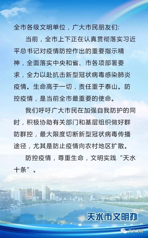 防控疫情 尊重生命 文明实践“天水十条”