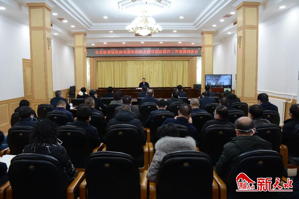 新天水讯【天水日报记者马哲】1月28日,市政府召开全市新型冠状病毒感染的肺炎疫情联防联控工作视频调度会,对我市疫情防控工作进行再安排再部署。市委副书记、市长王军强调,全市各级各部门要把疫情防控作为当前最重要的工作,高度重视,严而又严、实而又实、细而又细地抓好联防联控措施的落实,坚决遏制疫情在我市输入和蔓延