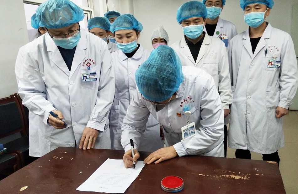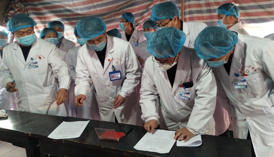 1月30日,清水县人民医院30名医务人员集体重温入党誓词,签署了抗击新型冠状病毒肺炎疫情的请战书,30个字体不一的名字凝聚起共抗疫情的信心和决心。