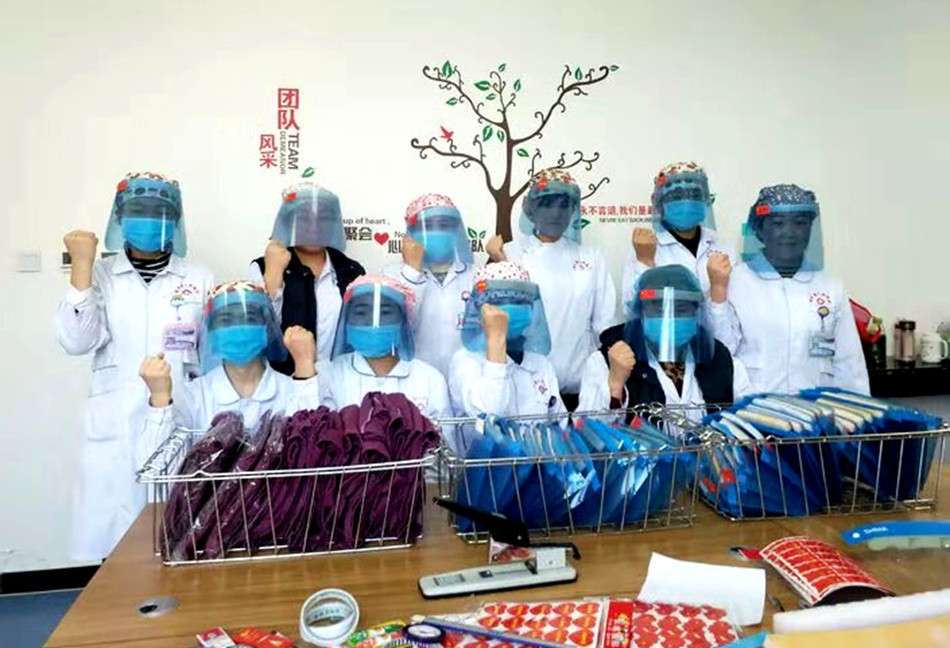 面对清水县人民医院一线医护工作人员防护面罩和口罩紧缺的局面,护士长便带领医院消毒供应中心和洗衣房的工作人员,一起构思,一起设计,用无纺布和废胶片为没日没夜奋斗在一线的医护人员制作出了一个个爱心口罩和防护面屏,曾经可以熟练掌握各项护理操作的手,今天她们拿起了剪刀,用起了缝纫机,此时此刻,她们变身生产工人,默默为病人和同事的安危绞尽脑汁,因为需要,她们义不容辞,齐心协力,奉献自己的一份力量 。