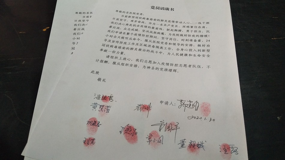 一份份申请书、一个个请战者、一句句宣誓词……薄薄一张纸,满满医者情。鲜艳的红手印和主动请战的铮铮誓言,让人肃然起敬。