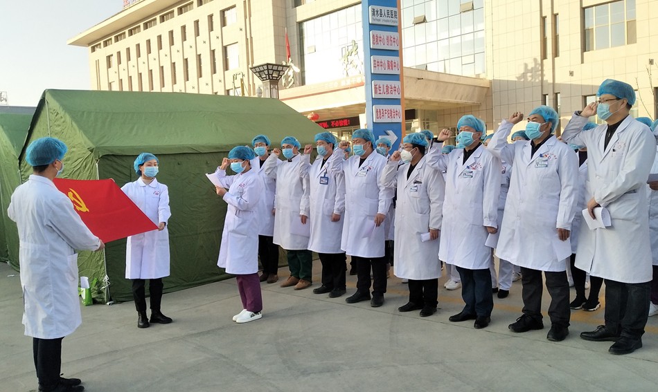 为抗击疫情,保卫人民群众身体健康和生命安全,清水县人民医院党委临时成立了抗击疫情党支部,号召党员干部冲锋在前、奋勇当先,以科学的理念和坚韧不拔的毅力抗击疫情,保卫人民健康,让党旗在疫情防控斗争第一线高高飘扬。