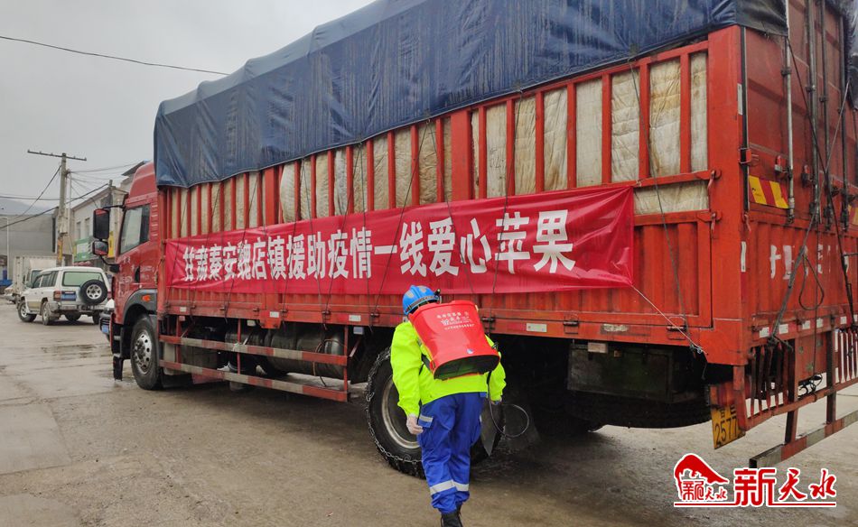 新天水讯【天水晚报记者王军祥】新型冠状病毒感染的肺炎疫情防控形势严峻,医务工作者日夜奋战在最危险的疫情一线,守护着百姓健康。为表达对医务人员的感谢之情,秦安县魏店镇的农民捐出自家的苹果,并想方设法找车运往兰州各大医院,为白衣天使献上自己的一份爱心。