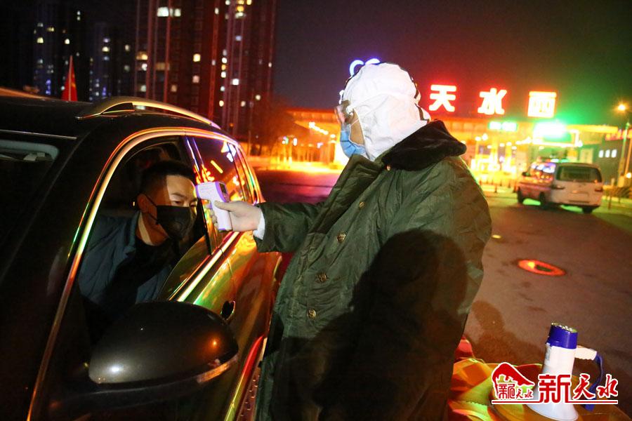 新天水讯【天水晚报记者 韩铁英】在抗击新型冠状病毒这场战“疫”中,除了战斗在医院隔离病房的白衣天使,还有白衣天使在冬夜的寒风中,甚至在深夜零度以下,替我们24小时守护着这座城市。2月6日晚上10点,记者在天水西收费站采访了正在执行任务的秦州区王家磨社区卫生服务中心、西十里社区卫生服务站的医务人员。