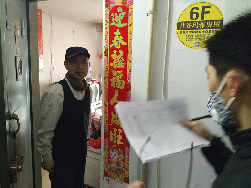 2月6日早上8点钟刚过,居住在教育局3号家属楼的县体育中心干部王小猛刚戴着口罩外出上班,便被一阵“不速之客”堵在了小区门口。他定睛一看,原来是帮老熟人——县教育局的党员干部上小区开展外省返甘(来甘)人员排摸来了。他笑着说:“不是前几天东关社区的工作人员刚排摸过嘛!”带队的组长、县勤俭办主任毛正海对他说,教育局党组和大像山镇党委及大像山镇东关社区党支部就配合社区开展疫情防控工作进行了协商,决定进行二次摸排。教育局全体领导、党员和部分干部42人连同退休的3名熟悉小区情况的老党员组成疫情防控工作外省返甘(来甘)人员排摸队,共分4个小组,对教育局4栋家属楼120户开展外省返甘(来甘)人员排摸。他所带领是第三小组,负责3号家属楼60户的排摸工作。