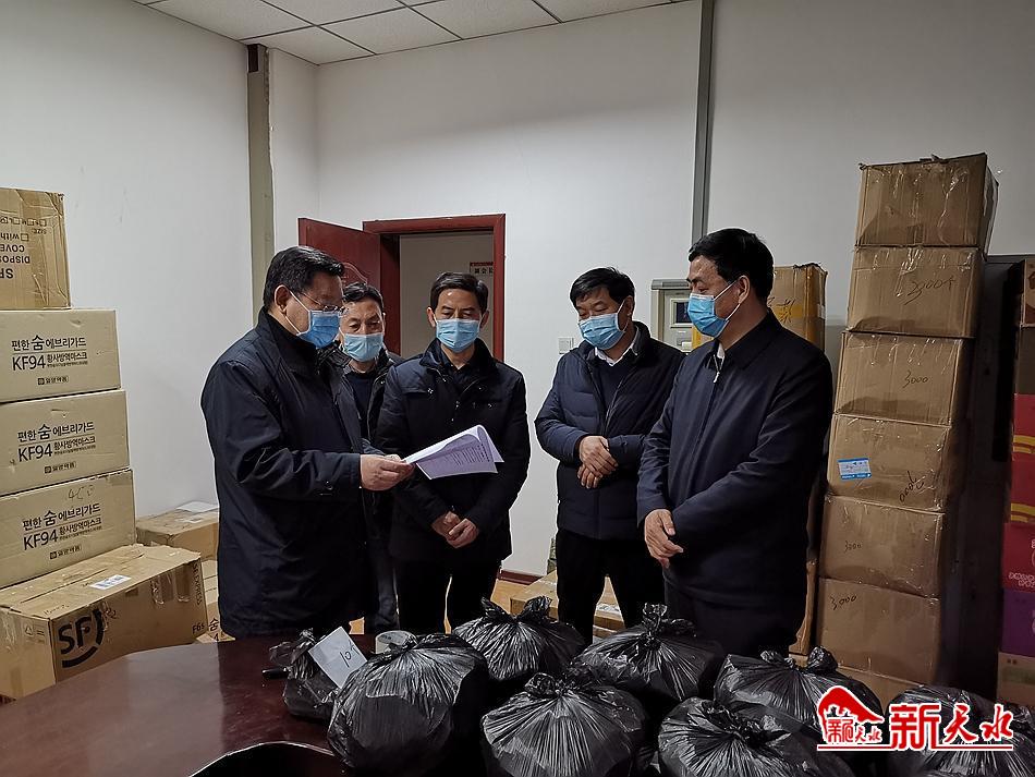 调研中,张建杰 、逯克宗实地查看了捐赠物资存放情况,详细询问了每一笔捐赠物资的登记、发放情况。