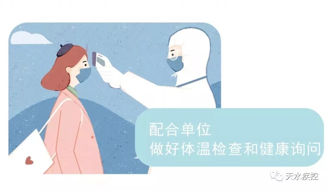 进入工作场所前,按照要求配合单位做好体温检查和健康询问。