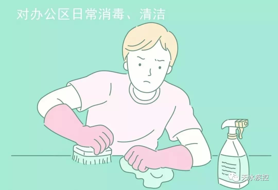做好工作场所、办公室、卫生间(门把手、桌面、地面等)和办公用品(电脑键盘鼠标、公用电话、手机、文具等)日常消毒、清洁,保持室内定时通风换气,避免使用中央空调。