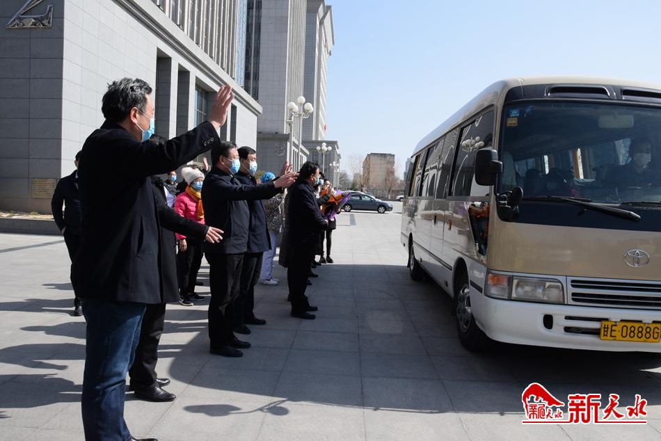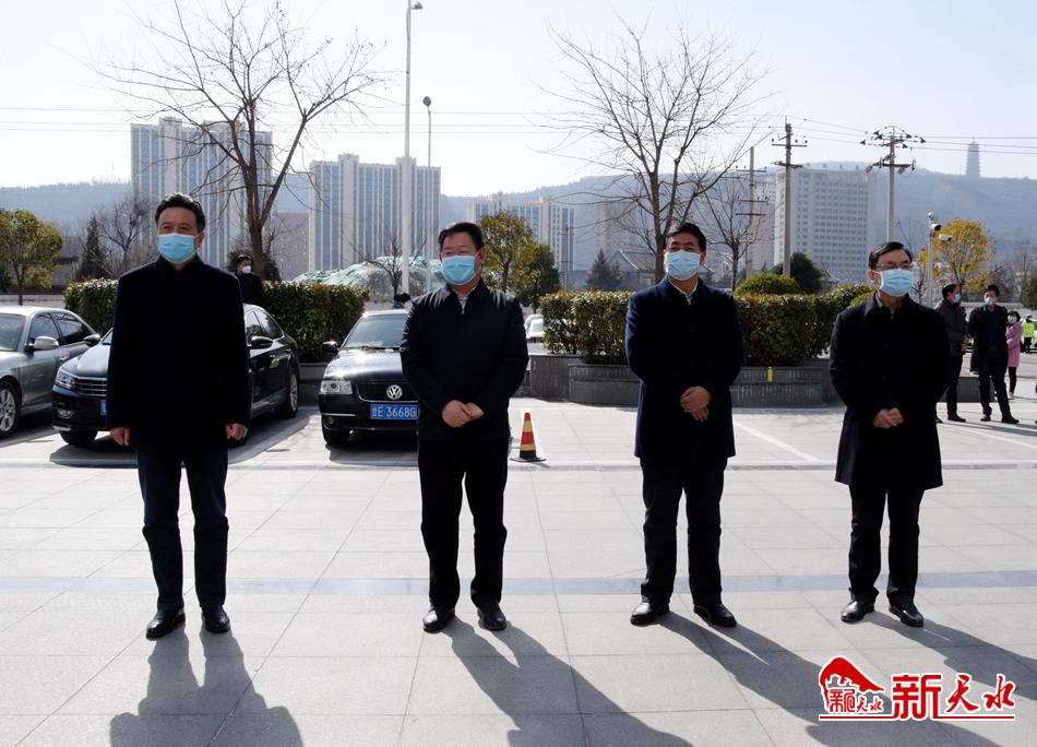 新天水讯(天水日报记者王晓馨)2月17日中午,我市第五批援助湖北医疗队启程,市委常委、宣传部部长张建杰,副市长逯克宗为医疗队员送行。