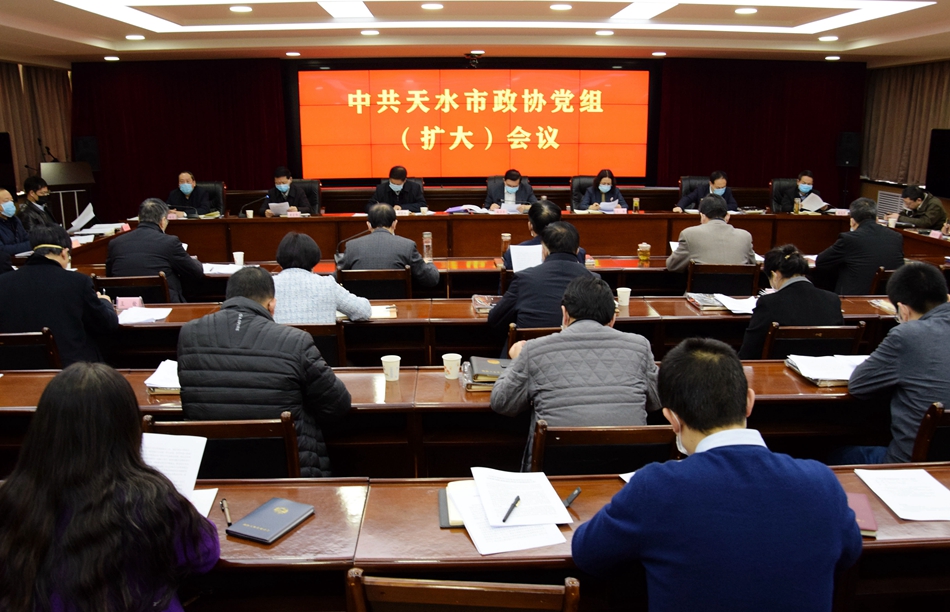新天水讯【天水日报记者冯丽娟】2月18日,市政协党组书记、主席赵卫东主持召开市政协党组(扩大)会议。市委常委、市委统战部部长、市政协党组副书记王燕,市政协党组成员苏定武、郭明兴、唐宏伟、郭世文、贾忠慧出席会议,市政协副主席、市民进主委屈光平列席会议。