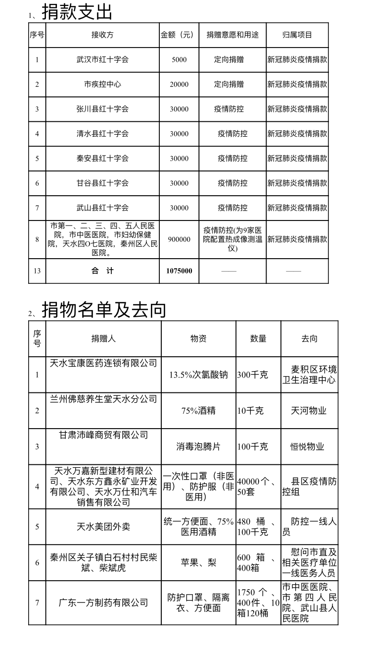 天水市红十字会接收社会捐赠款物支出公告(第4号)