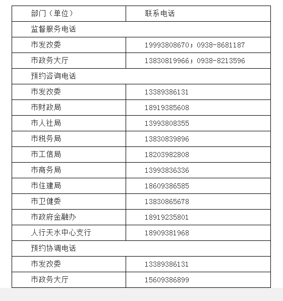 1、电话“咨询办”。设立2部值班服务电话(0938-8526006;0938-8526117),专人接听,由相关部门宣传解读政策,指导业务办理。