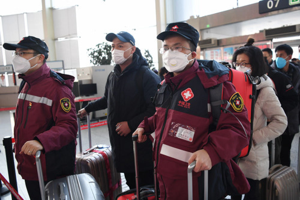 1月28日,甘肃医疗救治队的医护人员从兰州中川国际机场出发前往武汉。新华社记者 陈斌 摄