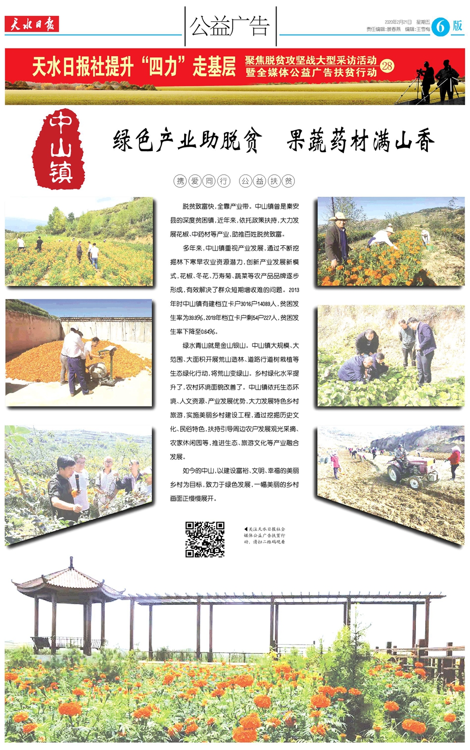 【天水日报社公益广告扶贫】秦安中山镇:绿色产业助脱贫