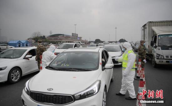 资料图:检疫人员在一高速公路服务区设专用通道,对驾乘人员逐一测量体温。中新社记者 刘忠俊 摄