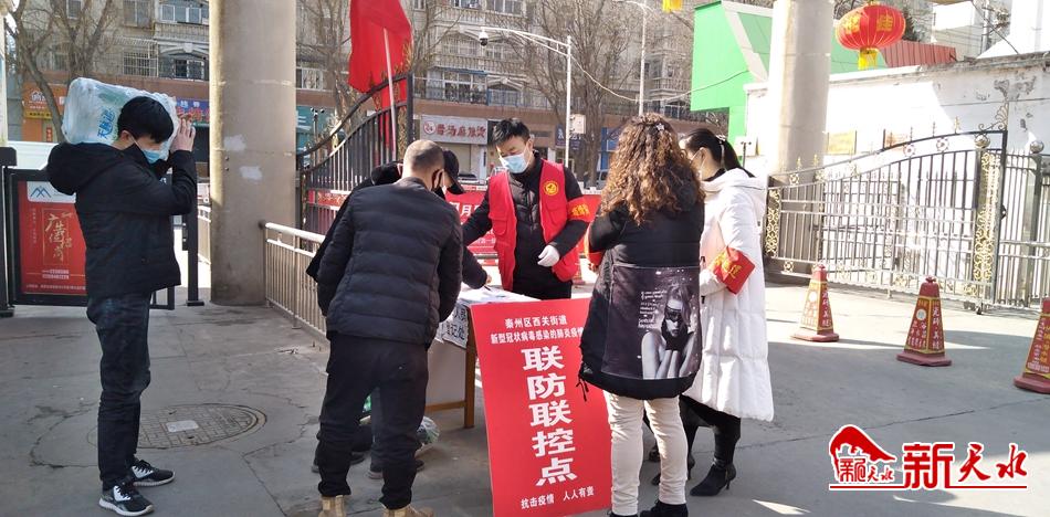 居民小区严格实行“七个一律”(一律开一道门、一律佩戴口罩、一律出具证件,一律测量体温、一律登记信息、一律检查车辆、一律消杀病毒)值守制度,全天候排查管控,教育引导居民非允许不进入、非必须不外出。在辖区商场、超市等商业网点,对进入人员全部测量体温,经营人员全部佩戴口罩,严防病毒传播扩散。在伏羲广场等公共场所,设立宣传牌、提示牌,联合社区民警劝导群众不聚集不扎堆,坚决禁止聚众聊天、打牌下棋等行为。