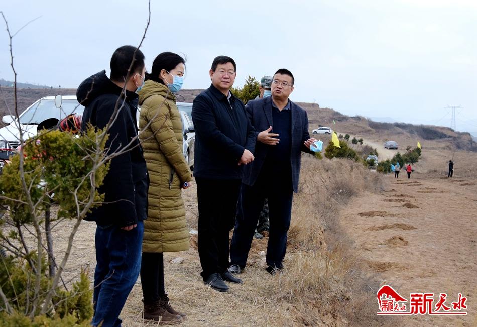 最后,张建杰还现场察看了天水镇马莲山片区万亩优质果业产业园栽植情况。