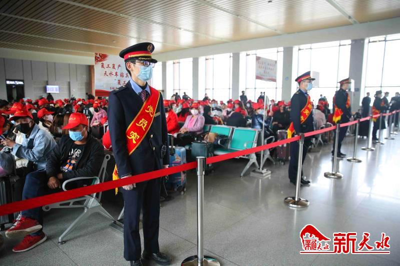 复工复产后,中国铁路兰州局集团有限公司天水车站主动加强与地方政府、人力资源部门协调对接,做好团体客票办理、旅客运输组织和疫情防控措施落实等保障工作,全力确保外出务工人员安全便捷踏上“复工路”。