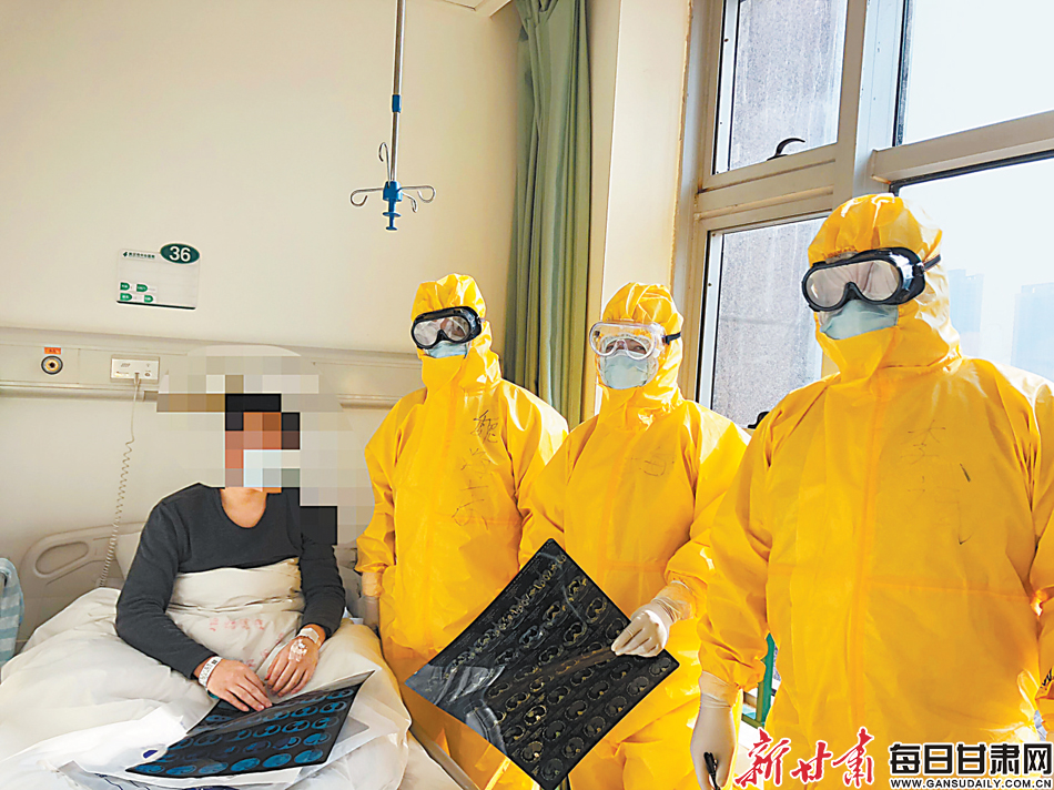 来自酒泉市人民医院的3名医务人员在武汉市中心医院查房。