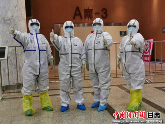 图为甘肃省人民医院援武汉护理专业团队队员进入病区工作前加油打气。(资料图)