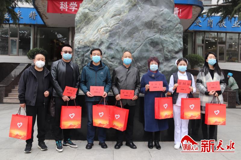 当天,团市委为市第一人民医院、市中医医院、市407医院21名赴鄂医护人员家属每户送去一个温暖包、价值500元购书卡、500元购物券和1000元慰问金,并委托麦积区团委、甘谷县团委对其余的11名赴鄂医护人员家属进行慰问;联合天水师院团委从在校大学生中招募了40名品学兼优的志愿者为援鄂医护人员子女提供“一对一”在线学业辅导志愿服务;安排青年志愿者为支援武汉医护人员家庭提供代购代寄等跑腿帮办、保洁照料等家庭生活服务;联合天水市心理咨询师协会利用“12355”青少年服务台向援鄂医护人员家庭,特别是家中未成年人子女提供“一对一”心理咨询、情绪疏导关爱服务;联合中国电信天水分公司为援鄂医护人员家庭提供每户赠送1000元话费、享受宽带优惠等爱心服务。