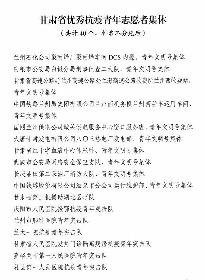 共青团甘肃省委通报表扬一批优秀抗疫青年志愿者集体和个人