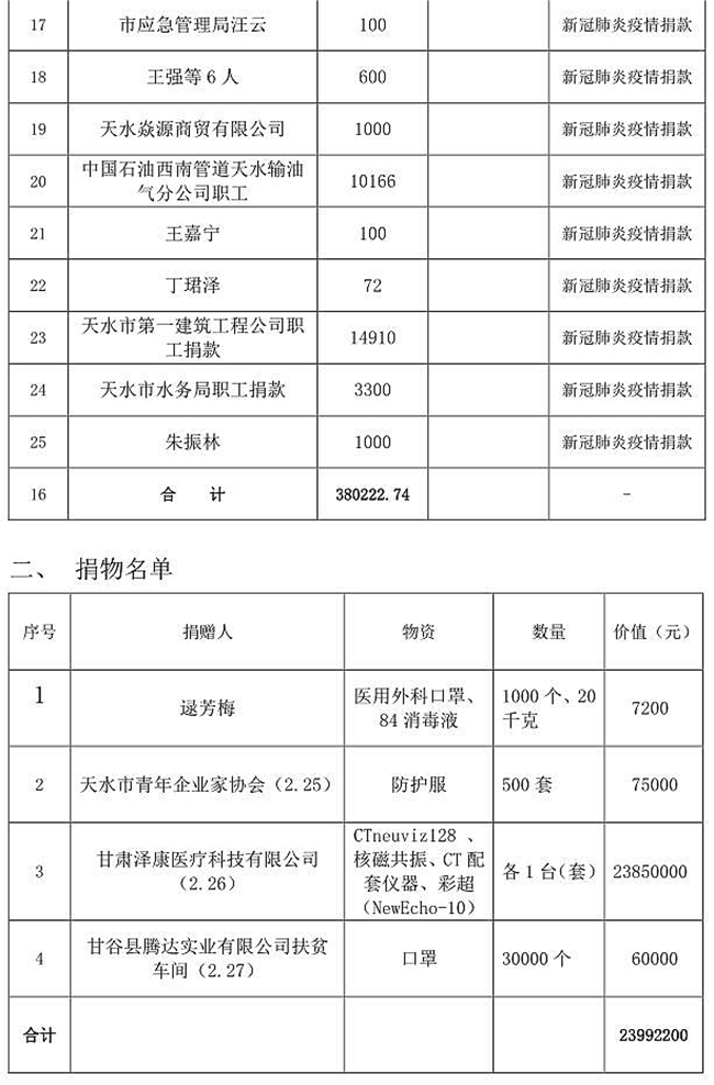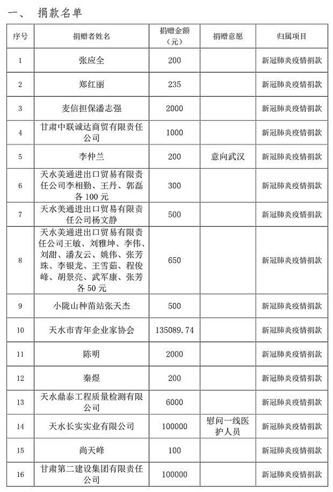 2、天水市红十字会捐赠信息