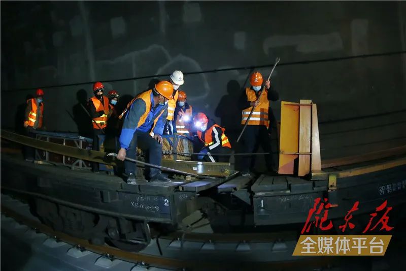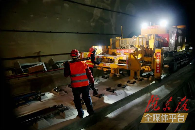 中铁一局承建的贾塬隧道无砟轨道剩余7km