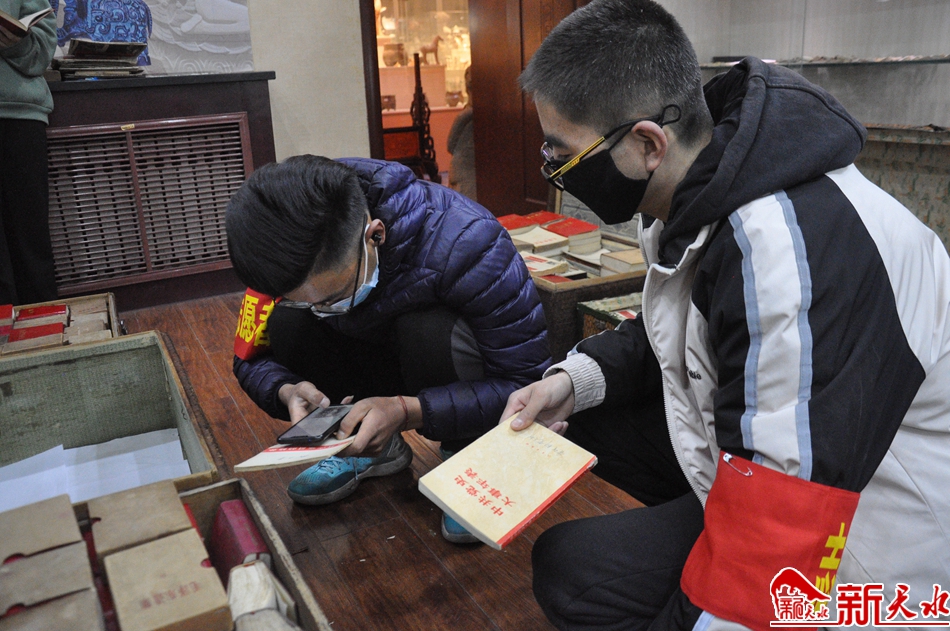 在博物馆的另一件展室里,青岛科技大的高巴来和甘交院的陈旭阳正在整理几大箱书籍,这些书籍涉及到不同种类,不同版本,不同形状,他们两个小伙子像绣花一样,把每一本书籍的名称、出版时间等进行详细的登记造册,然后按照书籍的种类进行归档。“馆里的东西太多了,一直都没有进行细化归类,现在我们利用假期,帮助馆里进行初步的整理,对我们来说既度过一个超长的假期,又进行了一次课外的研学,增长我们的知识,丰富了我们的阅历。像现在我们整理书籍才发现,像《毛泽东选集》这本书竟然有这么多版本,大大小小有近千本之多,这是我们课本上学不到的。”