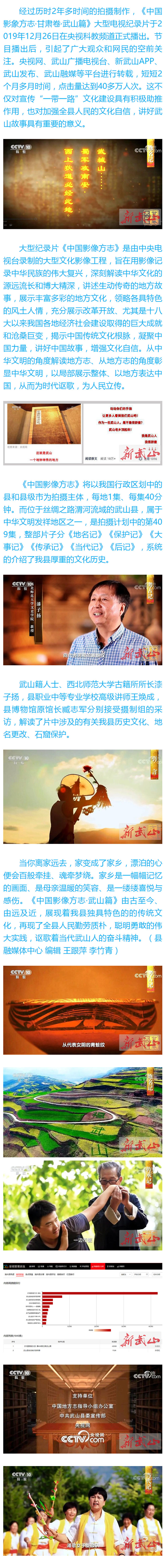 《中国影象方志·武山篇》播出引发社会关注