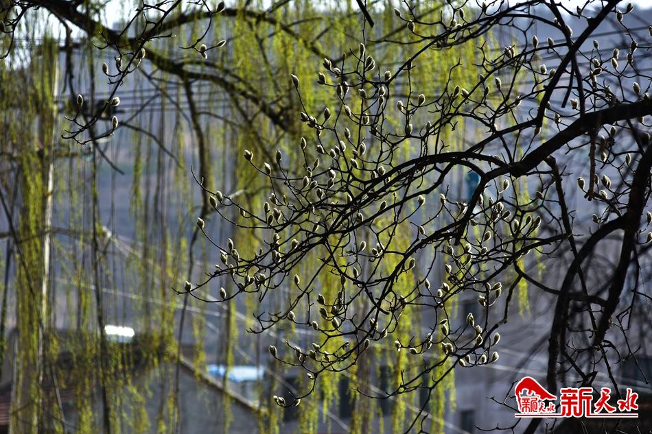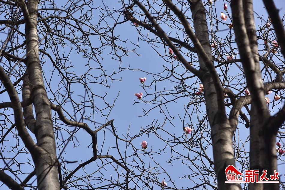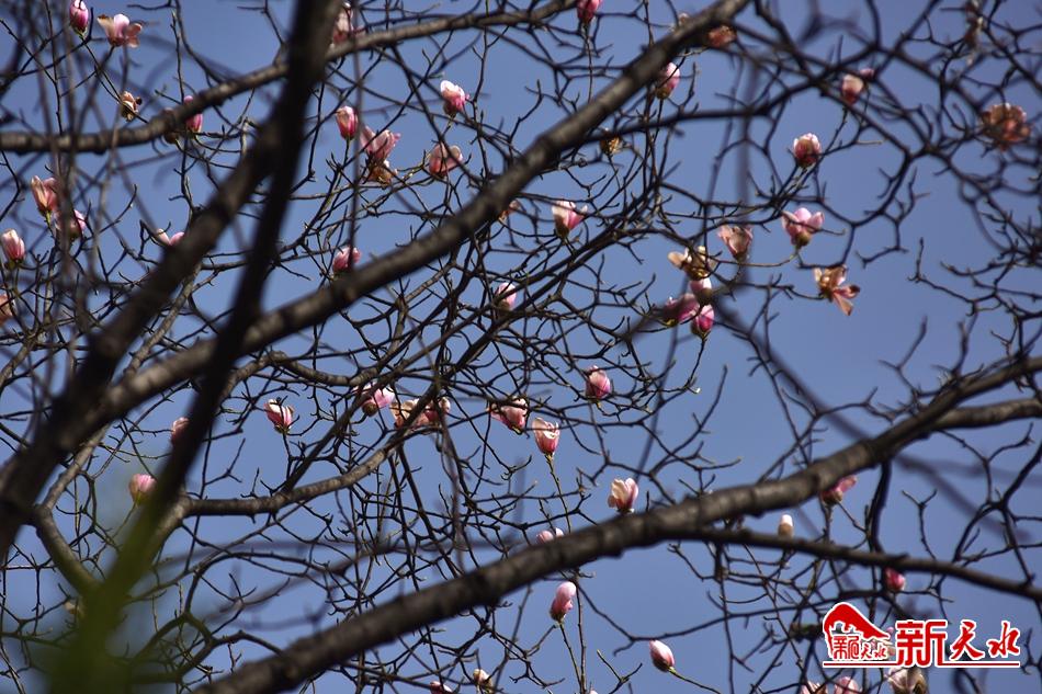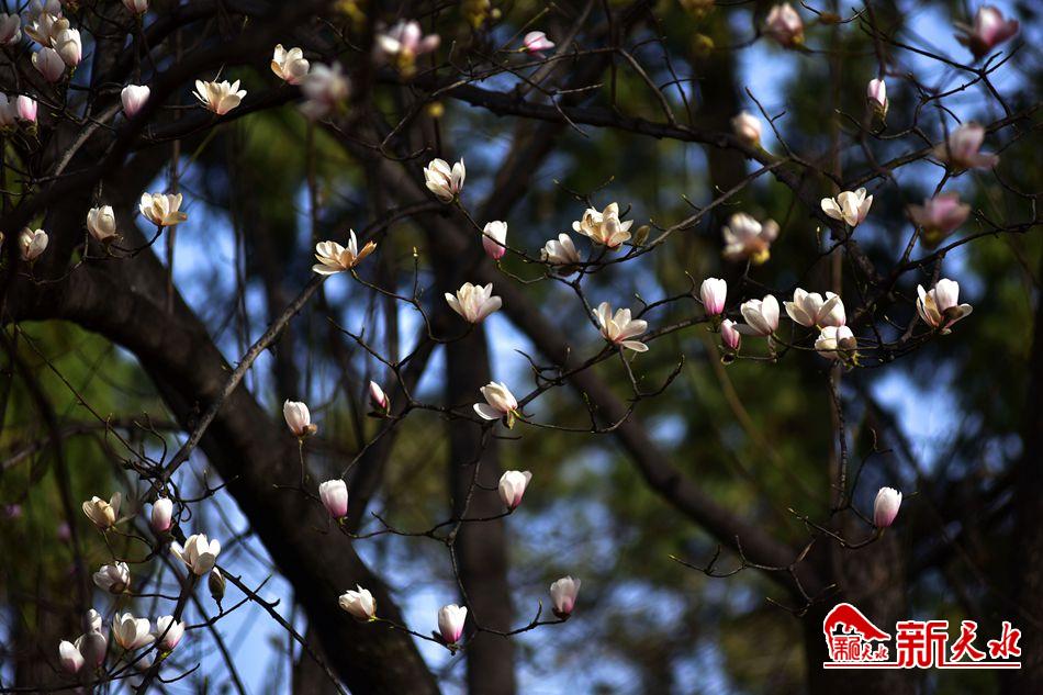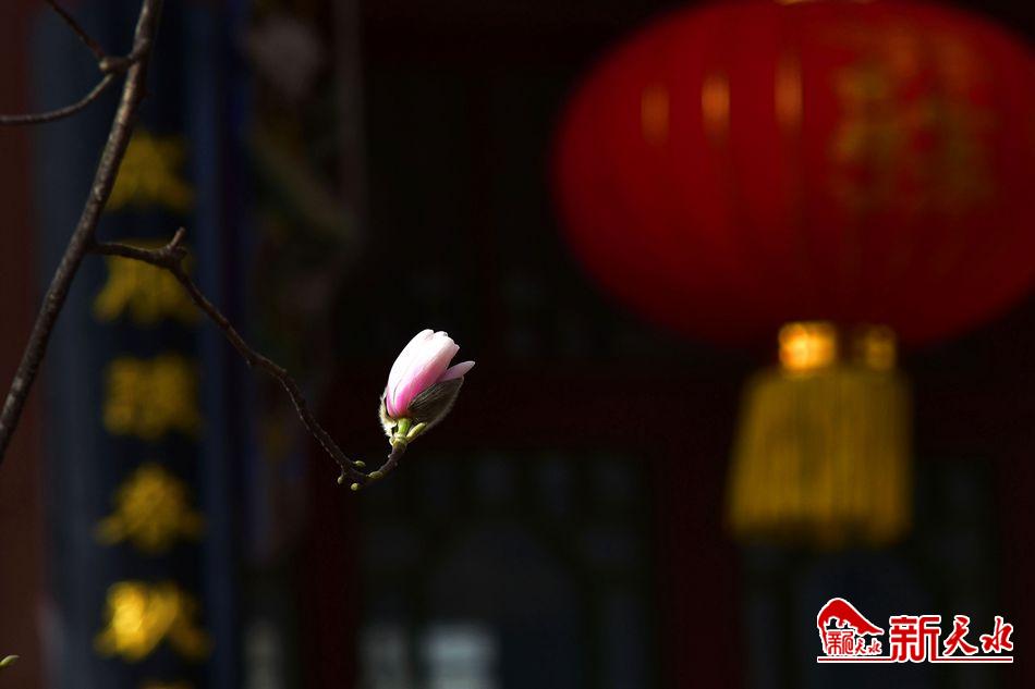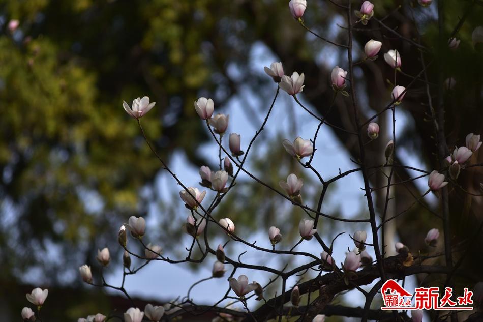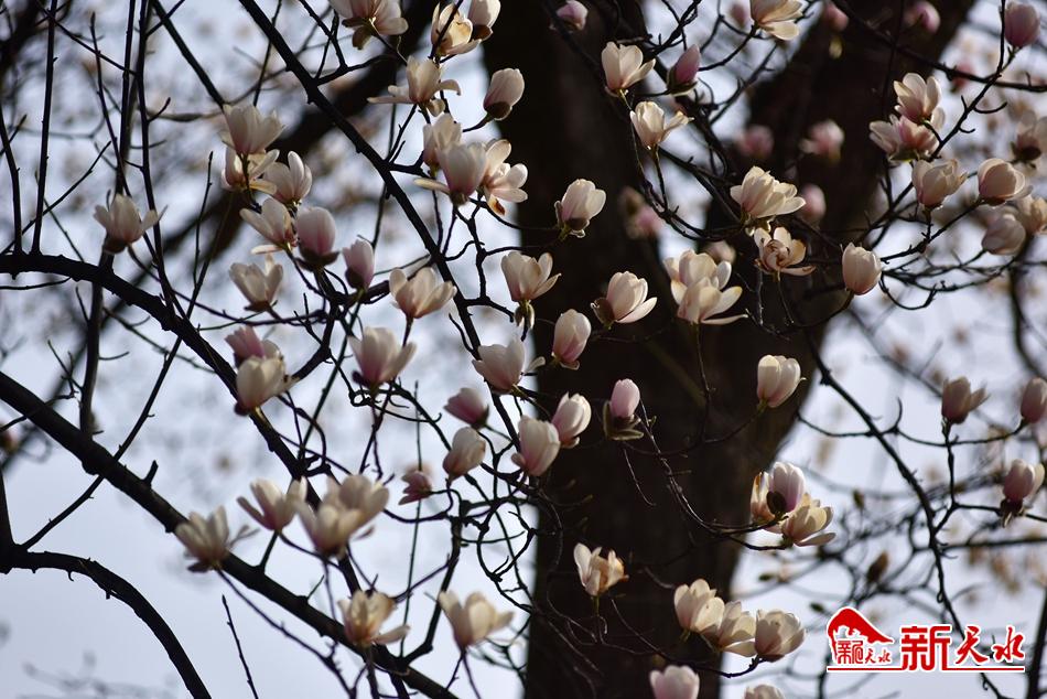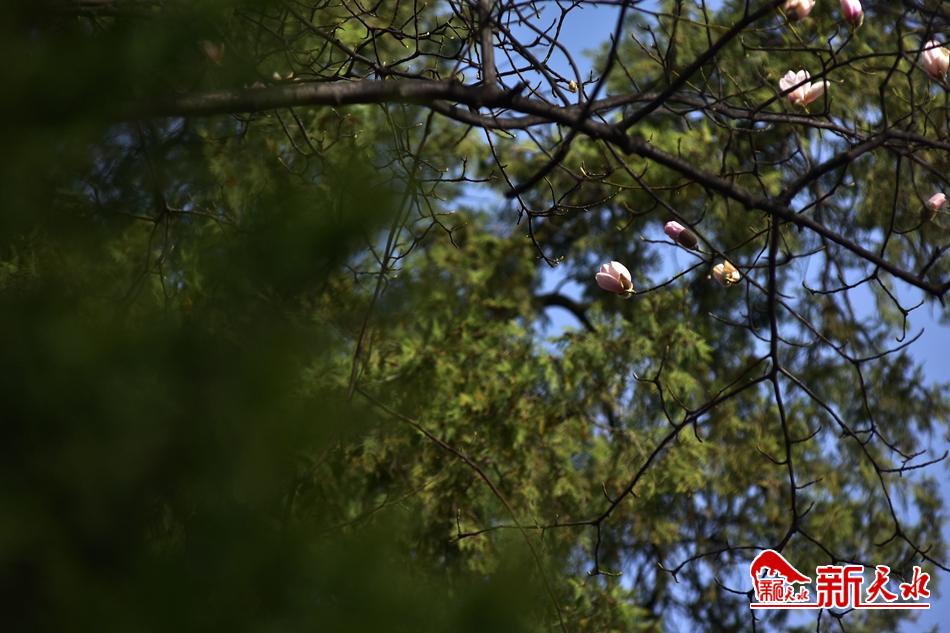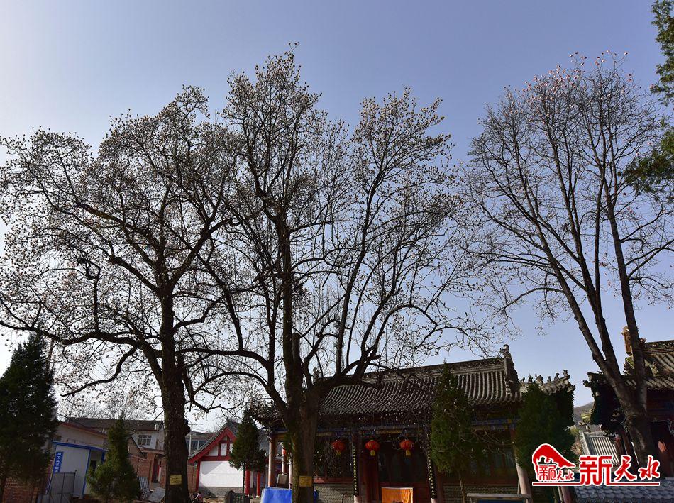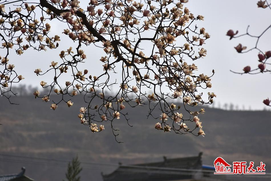 净若清荷尘不染, 色如白云美若仙。早春二月,麦积区甘泉镇太平寺内双玉兰堂前的两株玉兰树上的玉兰花相继开放,清香四溢。