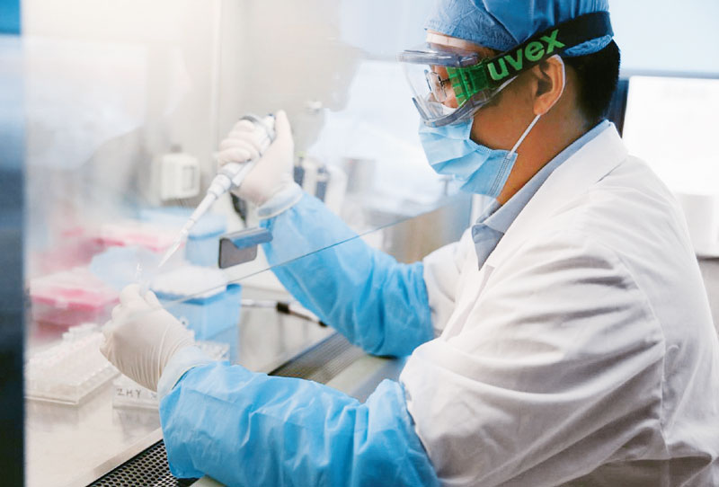 新冠肺炎疫情发生后,我国科研人员用了不到一周时间就确定了新冠病毒的全基因组序列,分离得到病毒毒株并向世界发布共享。我国在公共卫生和医疗健康领域多年积淀的科研能力、平台条件、人才储备和技术产品,使我们有信心有能力最终战胜这次新冠肺炎疫情,有力维护国家战略安全。图为科研人员在实验室进行病毒核酸提取。 军事医学研究院供图