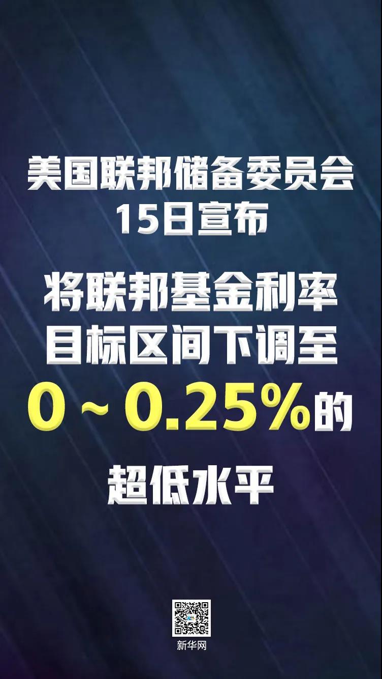 美联储15日宣布,将联邦基金利率目标区间下调1个百分点到0%至0.25%的超低水平,并启动7000亿美元量化宽松计划,以应对疫情影响。