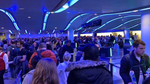 “(人与人之间的)距离非常近,”旅客安·施密特介绍,“假设我们本来没有病毒,那么现在有极大的几率感染上。”此外, 已经排了5小时队的罗杰斯与施密特都表示,没有看到任何设置免洗洗手液的地方。