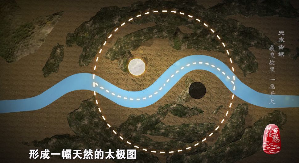 功夫不负有心人,终于有一天,他在观察地势时,发现卦台山周围的山水走势中蕴藏玄机,互相依偎的山与水,一刚一柔,一动一静。
