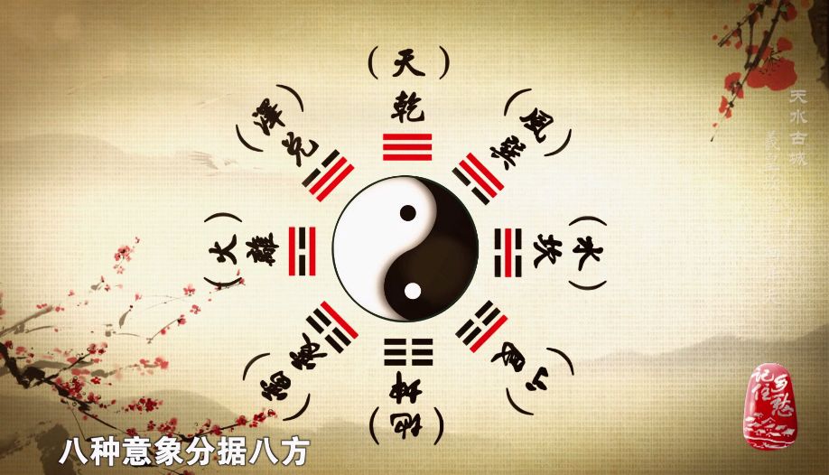 根据从自然界中得到的启示,伏羲创立出八卦图,引导人们认识自然规律,利用自然。