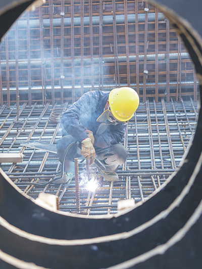 3月6日,工人在位于山西晋中市榆次区的太焦高铁晋中特大桥项目施工现场作业。 新华社记者 杨晨光摄
