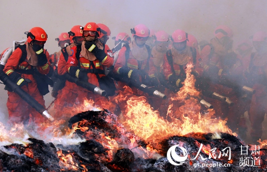 甘肃省森林消防总队开展灭火演练。(裴海博摄)