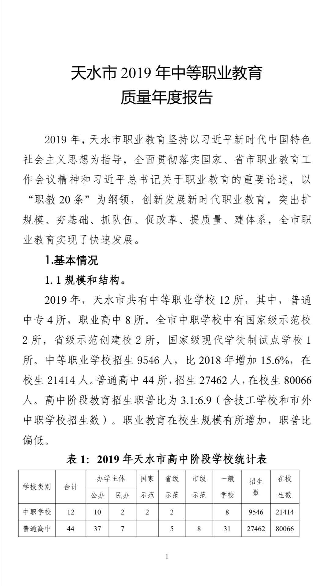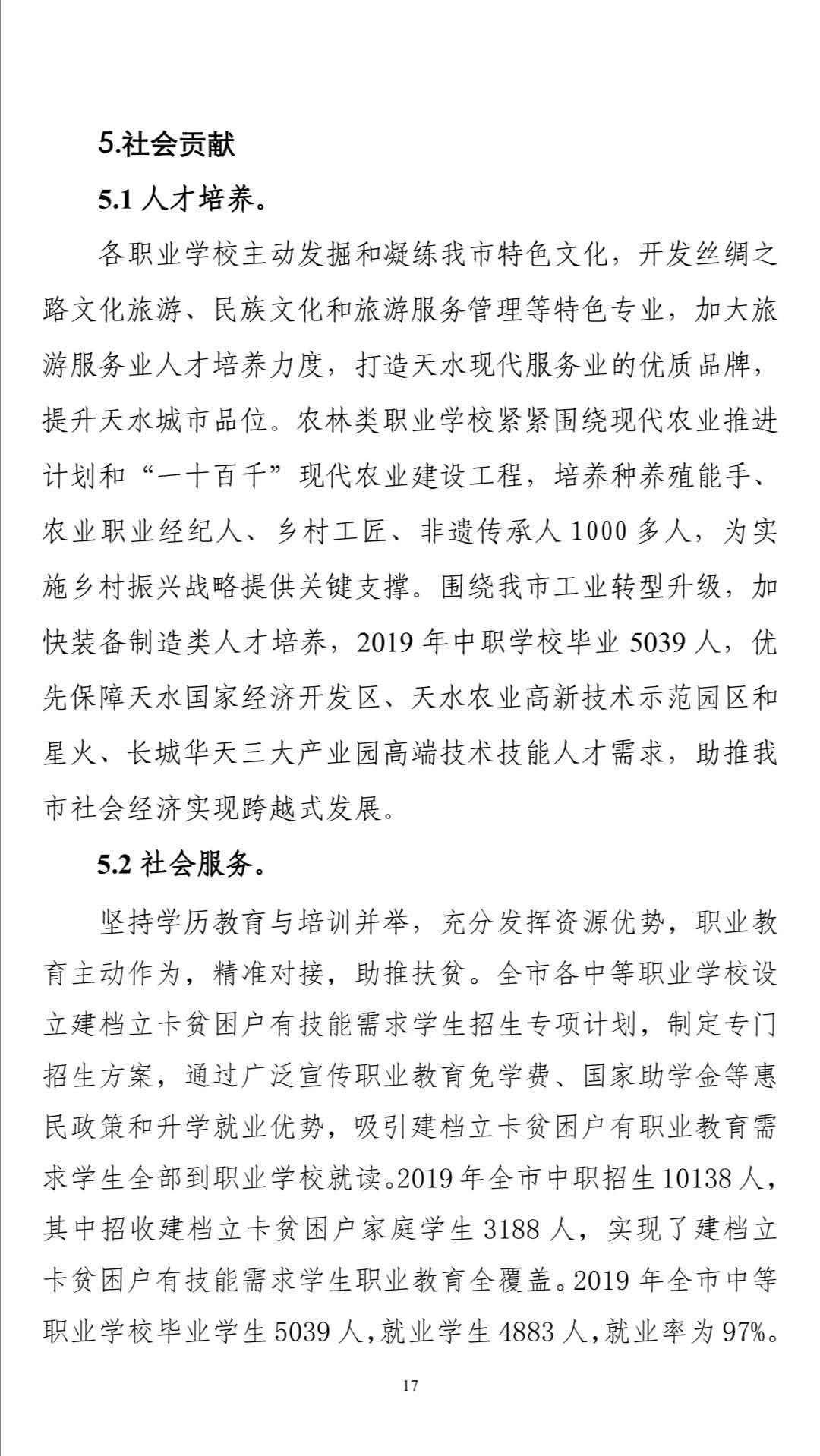 天水市2019年中等职业教育质量年度报告