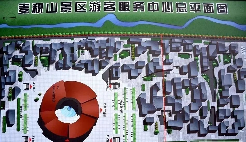 麦积山景区游客服务中心,位于天水市麦积区甘泉镇峡门村,距离麦积山石窟8公里处,是甘肃省重大文化旅游项目。2018年6月项目一期动工,目前工程建设正在有序推进中,将确保在施工质量和安全的前提下,如期完成建设任务。
