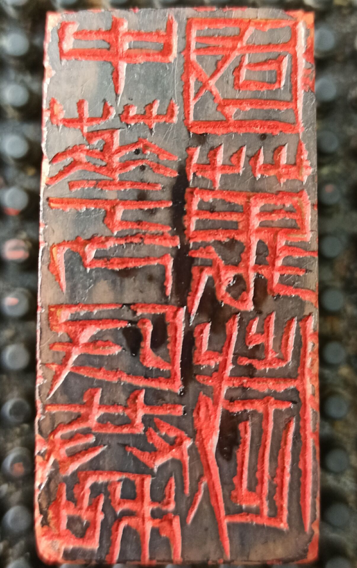 一枚充满侠气的“一寸相思”的阴文章引起了记者的注意,这枚长方形篆章笔笔刀剑,字字江湖,冲刀老辣,布局惊险,豪情与柔肠兼顾,忠义和家国同生。这是张国标今年3月12日应一位在北京的天水籍导演的邀请,为他的武侠剧《一寸相思》所刻的篆章,“接到邀请,我前前后后共刻了四枚,前三方都不太满意,有的笔意不符合剧情,有的布局缺少江湖豪气,直到第四方用了直冲刀才觉得表现出了江湖恩怨与儿女情长。那位导演看完后也很满意,表示要在剧目中署我的名字。”张国标腼腆的笑着说。