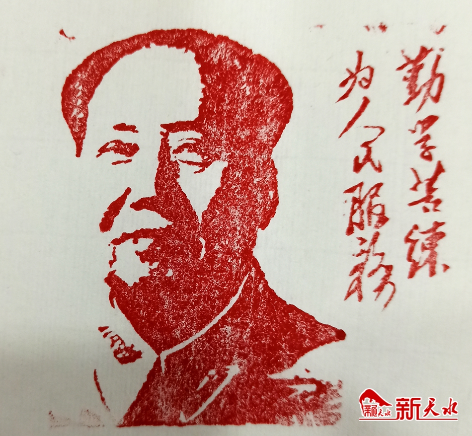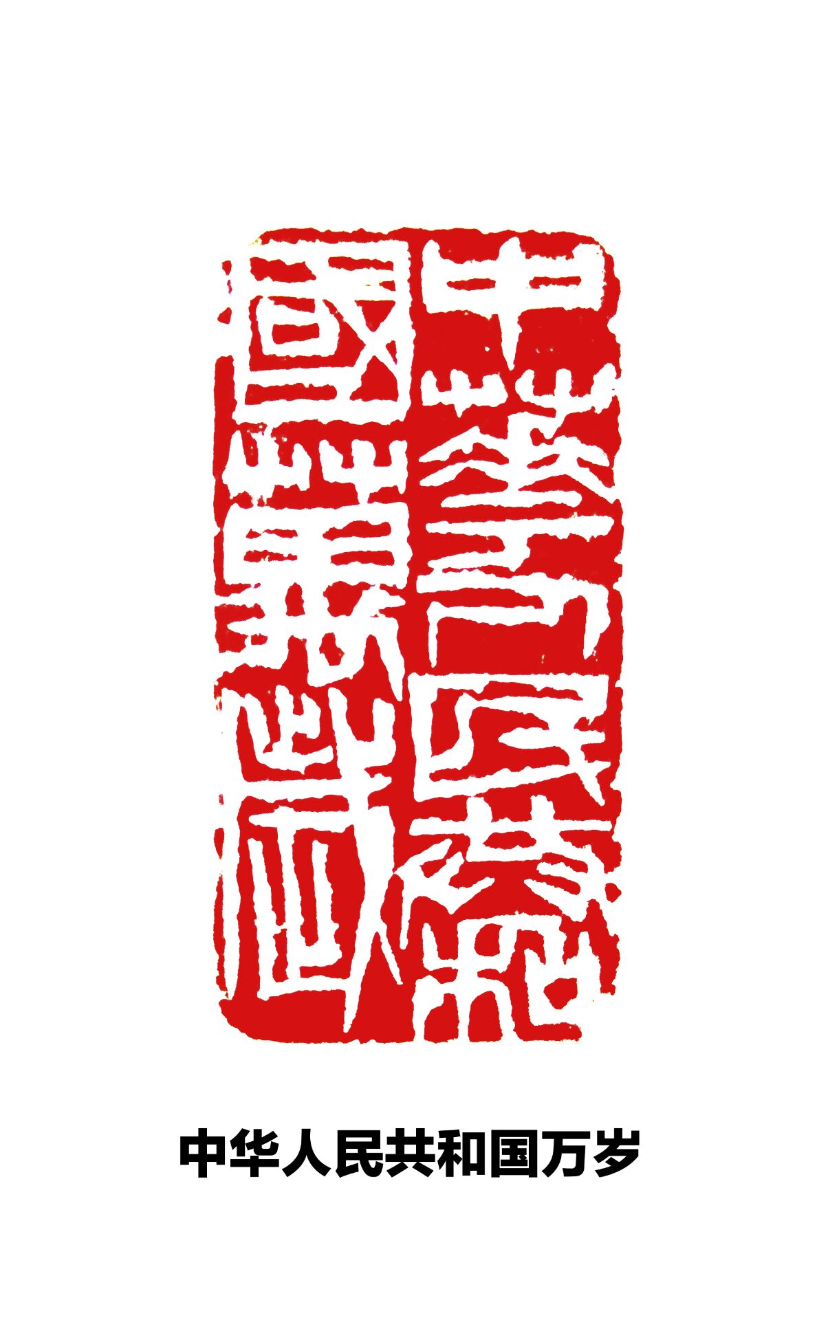 在张国标工作台的玻璃板下,压着一款“中华人民共和国万岁”的阴文篆刻印章,这款印章颇具齐白石制印的风格,用刀苍劲有力,雄浑拙扑,说起这方印章创作的过程,张国标说:“这是前几天我在看疫情的相关新闻,猛然之间感到我们国家的强大,心中一时感慨万千,情绪很是激动,头脑里猛的闪过‘中华人民共和国’这几个字来,一转眼正好看到桌上放着一枚长方形石料,于是随手拿来就刻了起来,整个刻制过程中自己被一种激情所充斥,没想到印制成后效果很不错,显得大力包容、坚韧不屈,抒发了老百姓的爱国情怀。”