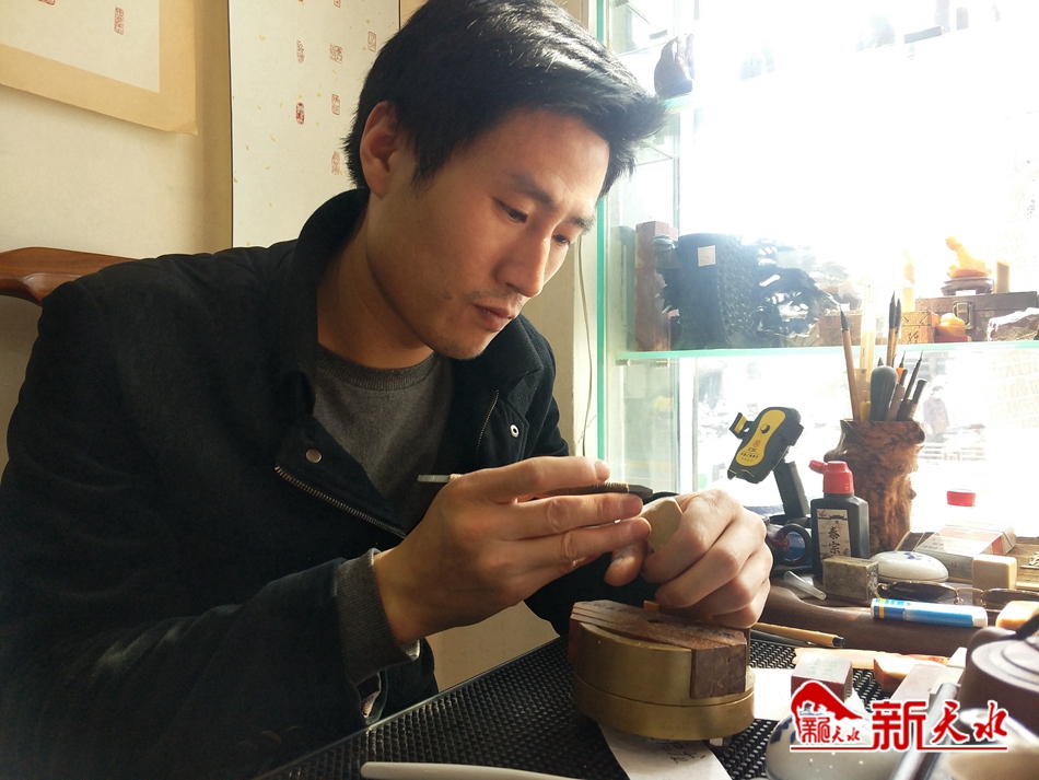 一块方寸石面,一把金刚刻刀,冲切间金石崩裂的声响,成就了一位而立之年江西青年的篆刻梦想。
