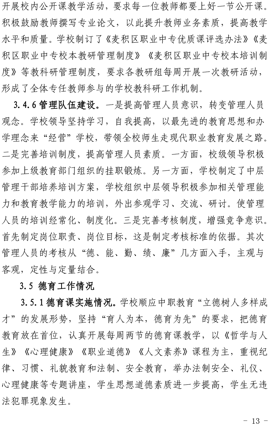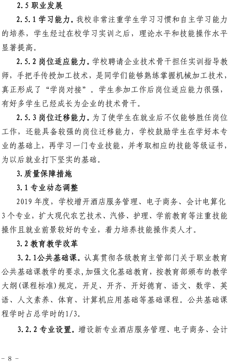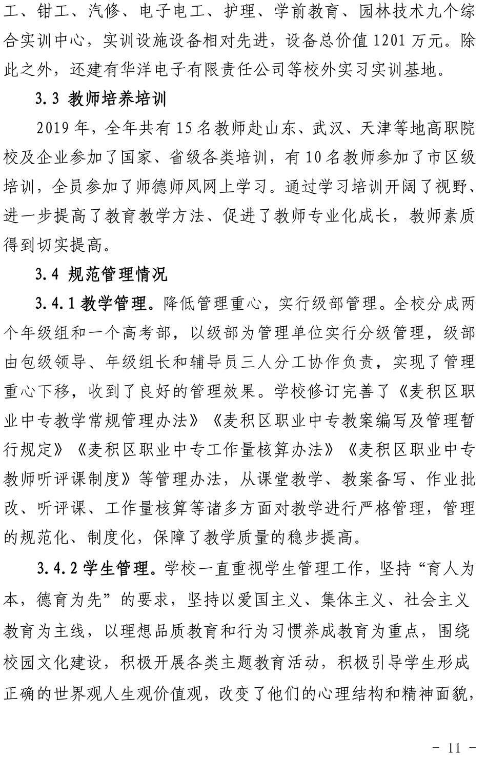 麦积区职业中等专业学校2019年度学校质量年度报告