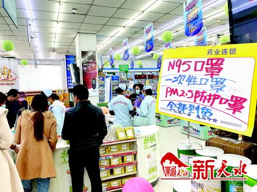 一家连锁药店天水区域负责人宋贵杰总经理在接受记者采访时说,从3月10日开始,在总公司的协调下,天水区域的药店一次性口罩到货3万个、各种儿童口罩到货1万个、PM2.5口罩1万个、N95口罩1万个,能保证每一位消费者购买上口罩。
