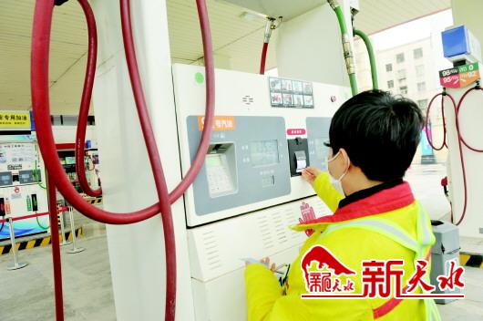 新天水讯 3月30日,在中石油甘肃天水销售分公司建新加油站,销售人员正在帮顾客打印单据。