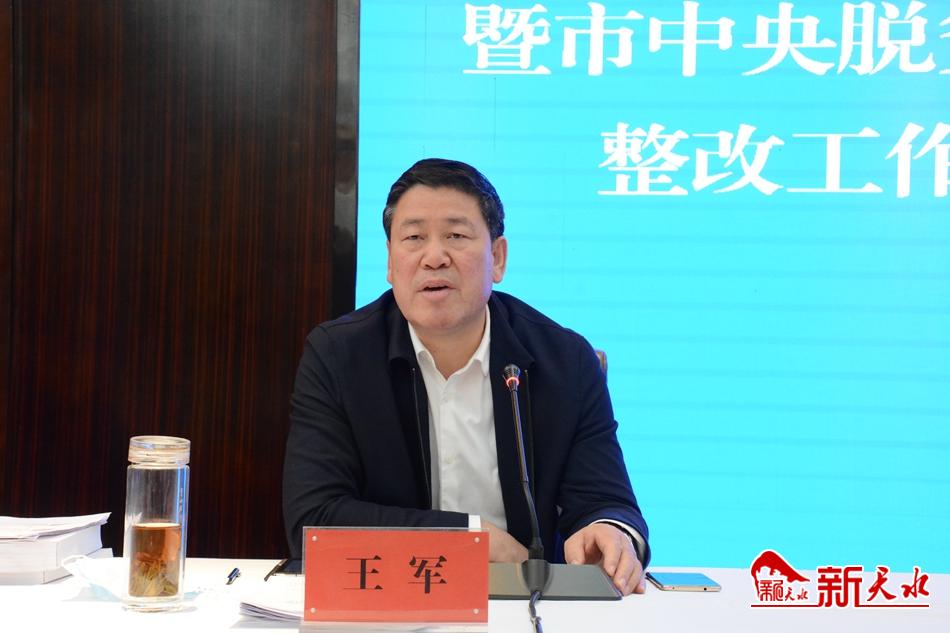 王军要求,全市各级各部门要深入学习贯彻习近平总书记重要讲话精神,充分认识脱贫攻坚收官交账的重要性和紧迫性,以新的状态、作风和做派对待脱贫攻坚。要紧盯中央脱贫攻坚专项巡视“回头看”和国家脱贫攻坚成效考核反馈的问题,紧盯各方面指出的问题和各渠道发现的问题,反复“过筛子”、反复“回头看”,坚决有力抓好整改落实。各级党委、政府和市级帮扶部门要从自身做起,深入脱贫攻坚一线,抓行业、抓问题,脚踏实地做表率;各专责组要各司其职、各负其责,密切配合、协同联动,从严从实从细抓好脱贫攻坚,凝心聚力攻克最后的贫困堡垒。