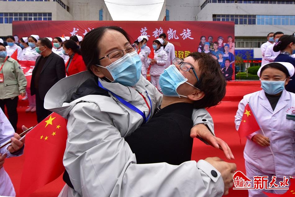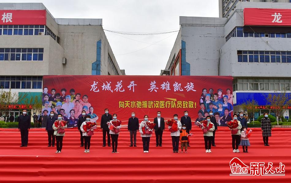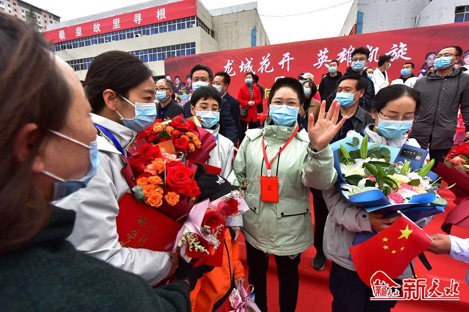 新天水讯(天水日报记者王晓馨 马哲)正是人间四月天,龙城处处春意浓。4月1日,我市驰援武汉医疗队首批7名医护人员在圆满完成救治任务后光荣凯旋。这是我市第一批凯旋归来的医疗队员。当天下午,市委、市政府在龙城广场举行欢迎仪式,隆重欢迎天水驰援武汉医护人员回家。
