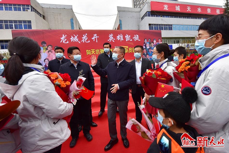 市委书记王锐出席欢迎仪式并为医疗队员颁发“最美天水人”荣誉证书。